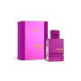 Al Haramain Amber Oud Ultra Violet EDP, serinin en modern ve yenilikçi üyelerinden biridir. Mor temalı şişe tasarımıyla dikkat çeken bu parfüm, açılışta narenciye ve aromatik akorlar, kalpte çiçeksi ve baharatlı notalar, dipte ise amber, oud, misk ve vanilya ile sofistike ve kalıcı bir koku profili sunar.