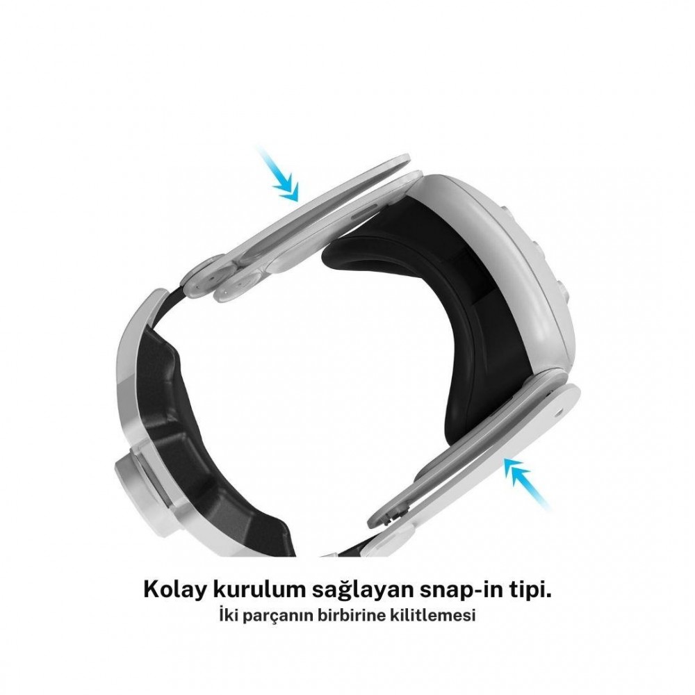 - META Quest 3'ün başınızda daha sağlam durmasını sağlayarak kaymasını veya sallanmasını engeller, bu sayede sanal dünyalara daha fazla dalmanızı sağlar.