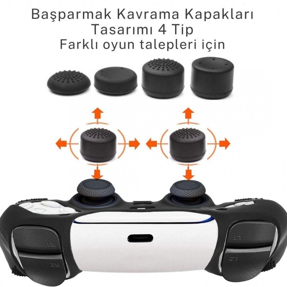 Cosmostech PS5 Controller Joystick Oyun Kolu Gamepad Uyumlu Silikon Koruyucu ve 8'li Analog Koruyucu Paketi ile Oyun Deneyiminizi Mükemmelleştirin!