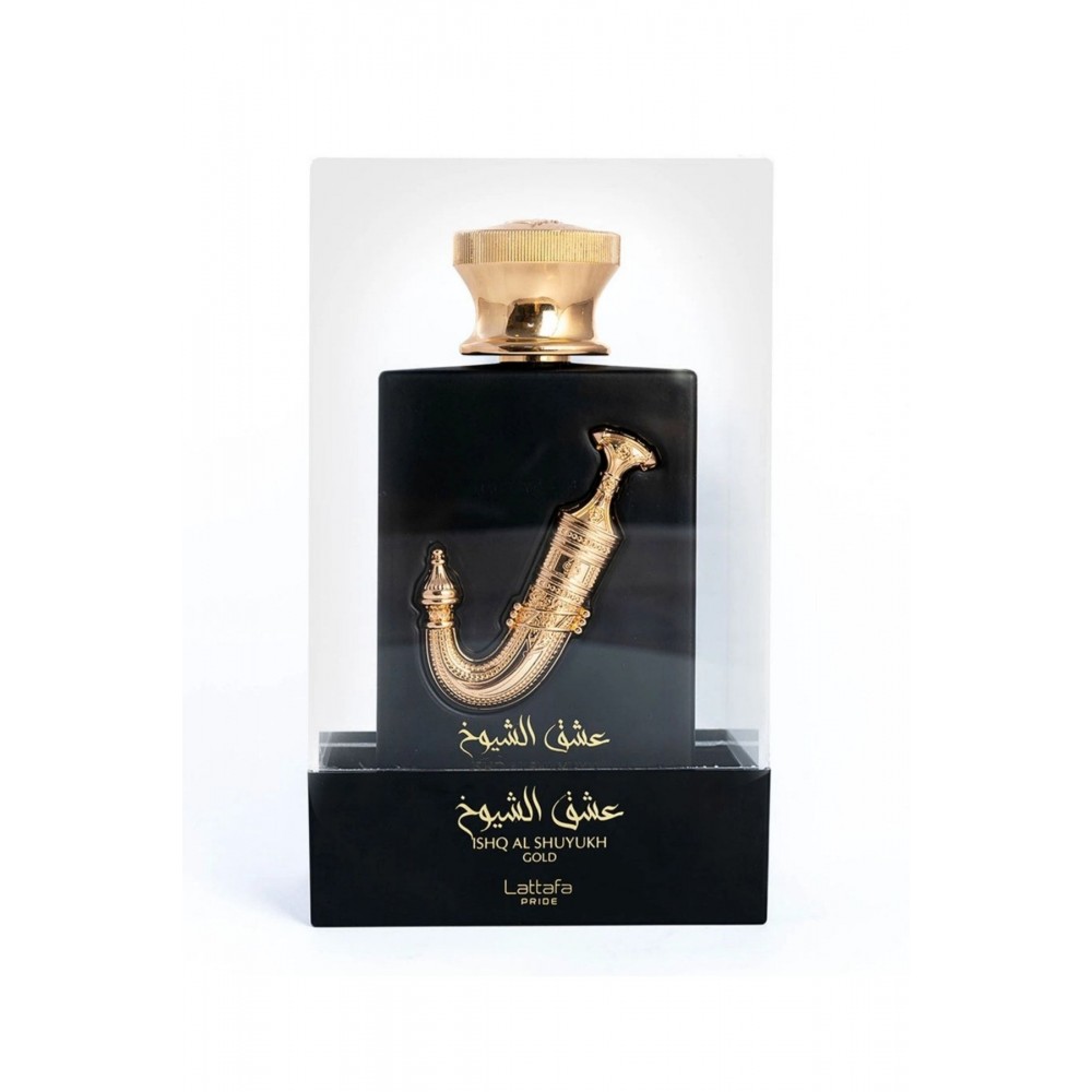 Lattafa Pride Ishq Al Shuyukh Gold Eau de Parfum 100 ml, altın dokunuşlarla zenginleştirilmiş lüks, oryantal ve odunsu bir unisex parfümdür.